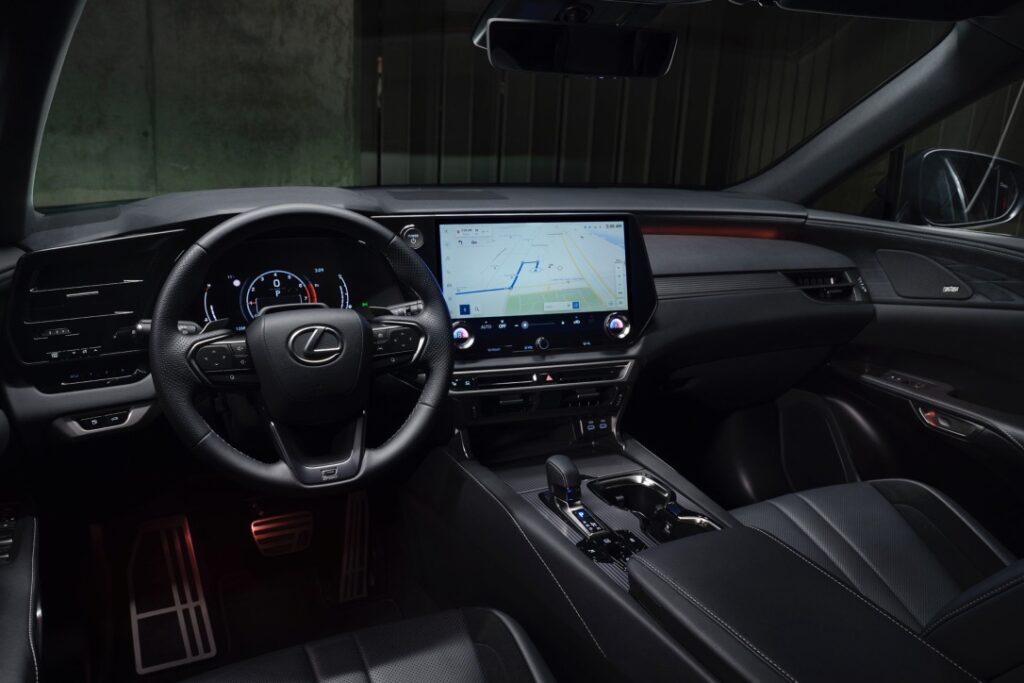 Este es un vehículo que llama la atención, con rasgos estilísticos que se suman al diseño de “Siguiente Capítulo” del RX y que ponen de manifiesto su carácter deportivo. En ese sentido, destacan las nuevas llantas de aleación de 21 pulgadas y radios divididos, guardabarros y taloneras laterales del color de la carrocería, detalles en piano black, paragolpes de perfil aerodinámico, emblemas F SPORT y un patrón de malla exclusivo en la parrilla frontal. En el interior, la continuidad temática se observa en el volante F SPORT, la palanca de cambios, los umbrales de puerta F SPORT y en los pedales de aluminio. Los asientos delanteros deportivos están acabados en cuero, con refuerzos en tejido Ultrasuede.