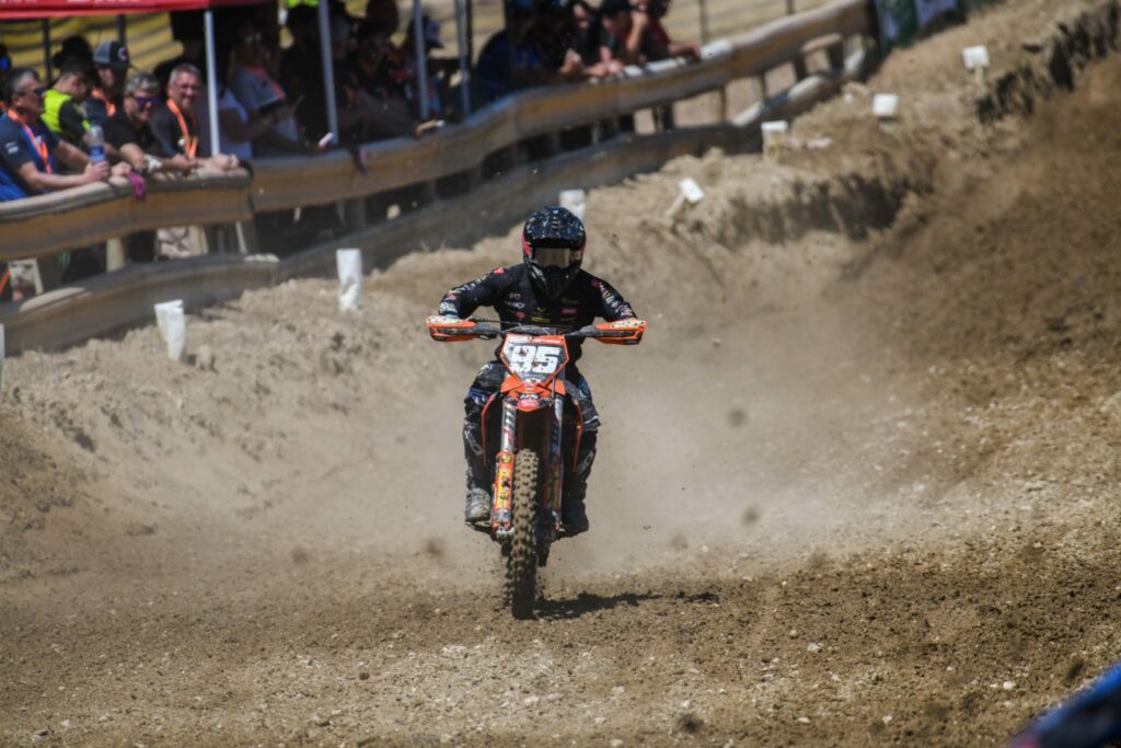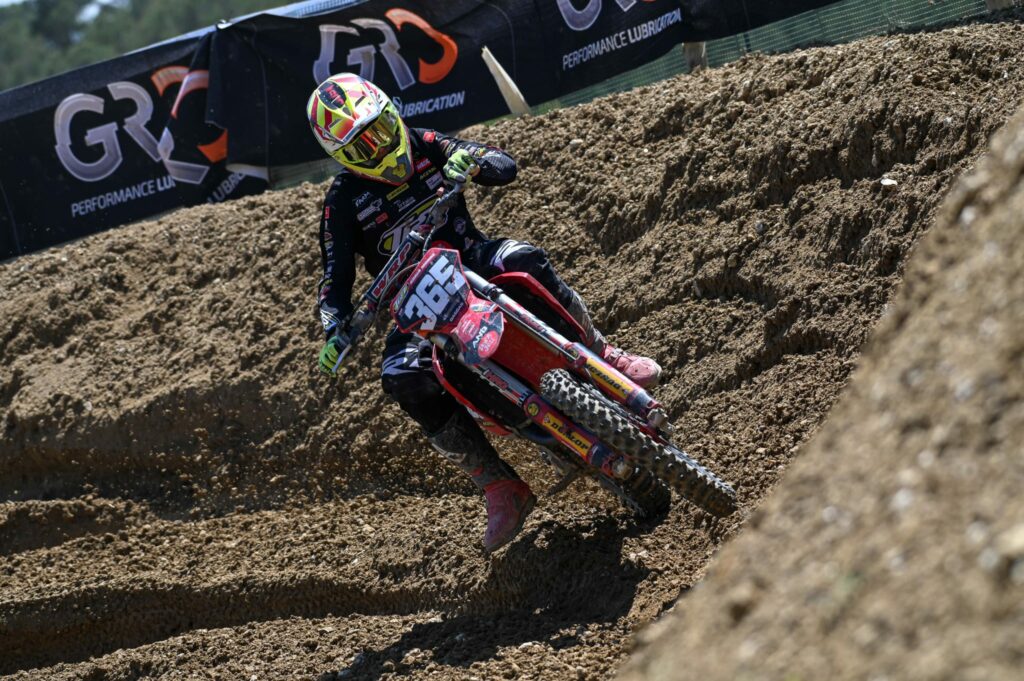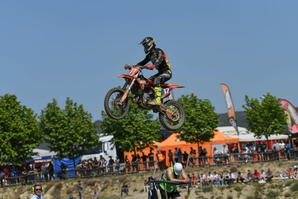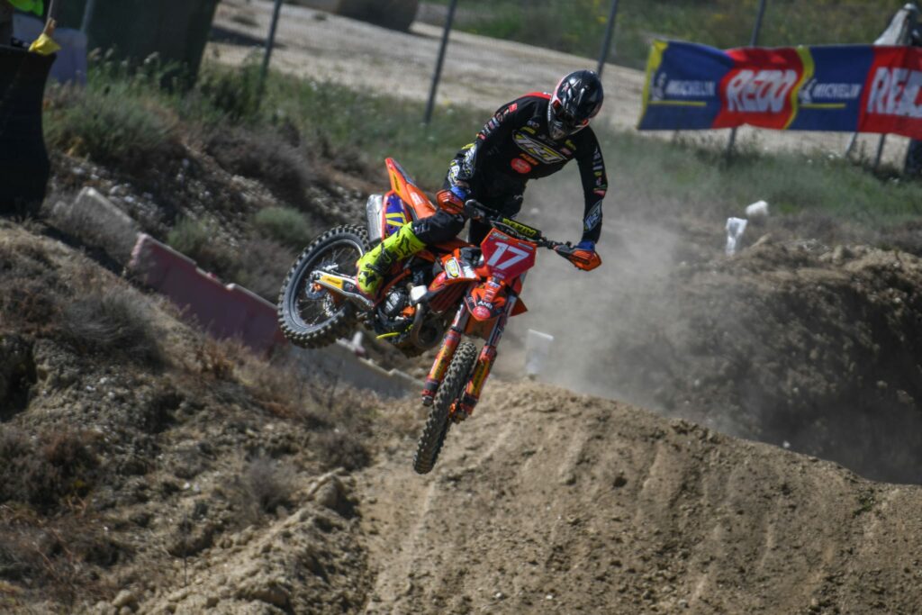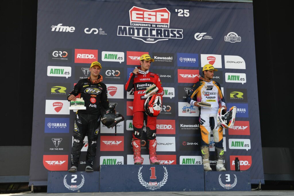 En la categoría reina de MX1 José Antonio Butrón ha vuelto a demostrar que es un pura sangre. Le costó entrar en materia el sábado con una quinta plaza en cronos y un cuarto lugar en la manga de calificación. No obstante, al día siguiente se exprimió a fondo de nuevo. En la primera manga se fue al suelo cuando iba rodando en la segunda plaza, remontó y cruzó la línea de meta tercero. En la segunda se volvió a ir al suelo, esta vez con mucha dureza, perdió mucha renta respecto a sus rivales, aunque con su coraje y esfuerzo llegó hasta la segunda posición para subir al segundo puesto de honor. Butrón llegó a la zona de podio muy dolorido de su muslo derecho tras sufrir un profundo corte que requirió de puntos de sutura.