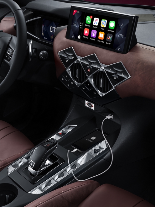 El puesto de conducción evoluciona con la adopción de un nuevo volante que reagrupa los mandos de las ayudas a la conducción y teclas para el equipo de información y entretenimiento y que se acompaña con levas para los cambios de marcha en las cajas automáticas. Una nueva pantalla central de 10,3 pulgadas en alta definición se ofrece de serie con una integración específica del nuevo sistema de información y entretenimiento DS IRIS SYSTEM.