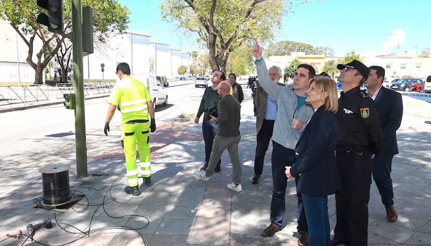 La alcaldesa de Jerez, María José García-Pelayo, junto a los tenientes de alcaldesa Agustín Muñoz y Jaime Espinar, y acompañada igualmente del comisario del Cuerpo Nacional de Policía, Francisco García Carrasco, y del jefe-intendente de la Policía Local, Manuel Cabrales, ha supervisado las actuaciones que ha acometido y las que están en curso por parte del Ayuntamiento en la avenida Blas Infante, enmarcadas en el refuerzo del dispositivo especial de la Policía Nacional y Policía Local contra las ‘carreras ilegales’ de motos que se han venido produciendo en los últimos días y que han provocado incidentes de orden público con ataques incluso a los efectivos policiales.
