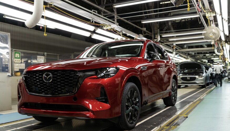 La producción en serie del CX-60 europeo se inició el pasado 15 de marzo. El primer cargamento de vehículos con destino a Europa zarpará del puerto de Nakanoseki el 26 de abril.