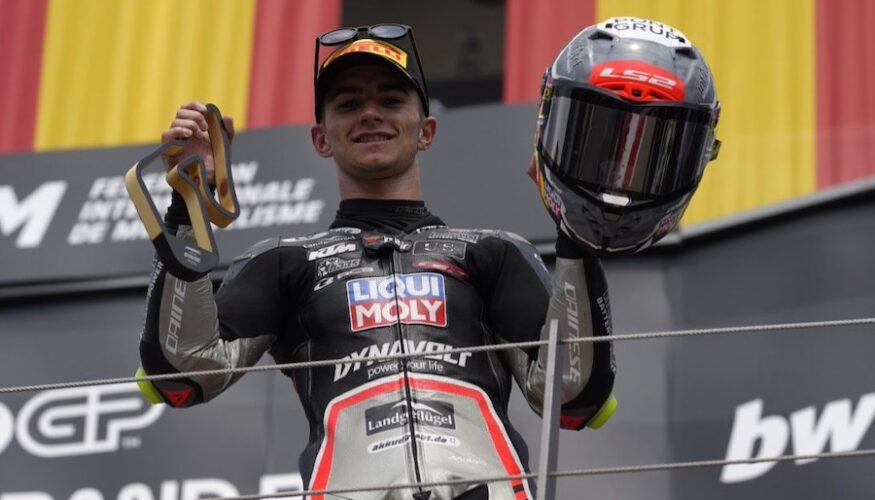 David Muñoz sigue resarciéndose de su mal inicio de temporada y sigue abonado a los puestos de honor al lograr en el GP de Austria el tercer escalón del podio tras una remontada de órdago. Su paisano José Antonio Rueda, a la sazón líder del Mundial de Moto3, solo pudo ser quinto quedando a las puertas del podio.