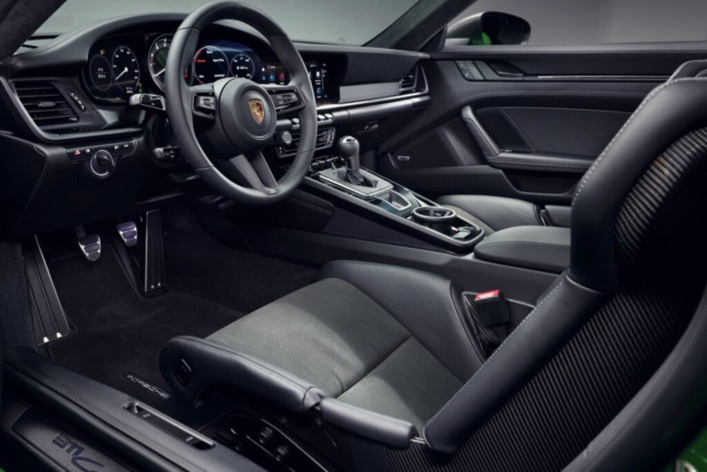 Se compone de cinturones de seguridad con color de contraste Gris Pizarra o Verde Lizard, el mismo tono que el de las costuras decorativas, el logotipo del 911 en relieve en los reposacabezas y los asientos con una franja central. Como opción, las alfombrillas también pueden llevar el logotipo y las costuras en esos dos colores de contraste.
