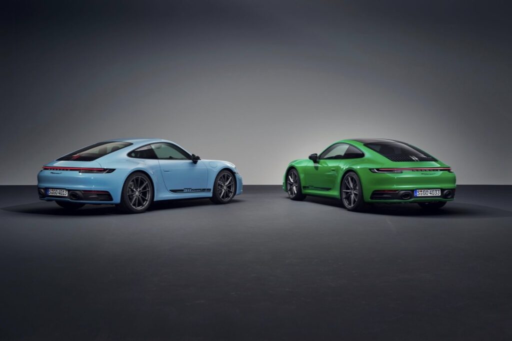 La “T” en la designación del Porsche 911 Carrera T significa Touring y su historia se remonta a la homologación del 911 T, en 1968. Este primer modelo se ofreció hasta 1973. En 2017, Porsche revivió la variante purista del 911 con el Carrera T de la generación 991. Desde entonces, el concepto de la configuración simplificada, pero excepcionalmente deportiva, se ha llevado con éxito a otros coches como el 718 Cayman T, el 718 Boxster T y el Macan T.
