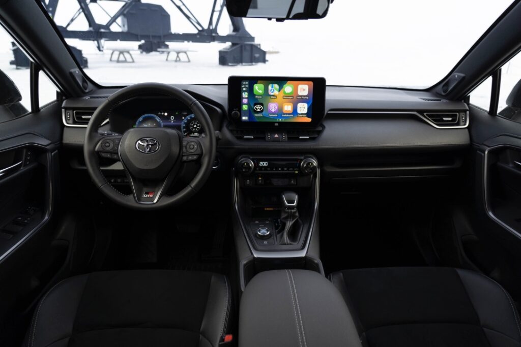 El RAV4 GR SPORT está equipado con el más reciente sistema multimedia Toyota Smart Connect, que se controla a través de una pantalla táctil de 10,5 pulgadas. El monitor, montado en el centro del salpicadero y cuya forma armoniza con los ángulos del diseño interior del vehículo, tiene una superficie negra continua y presenta gráficos en alta definición que optimizan la nitidez y la claridad independientemente de las condiciones de iluminación.
