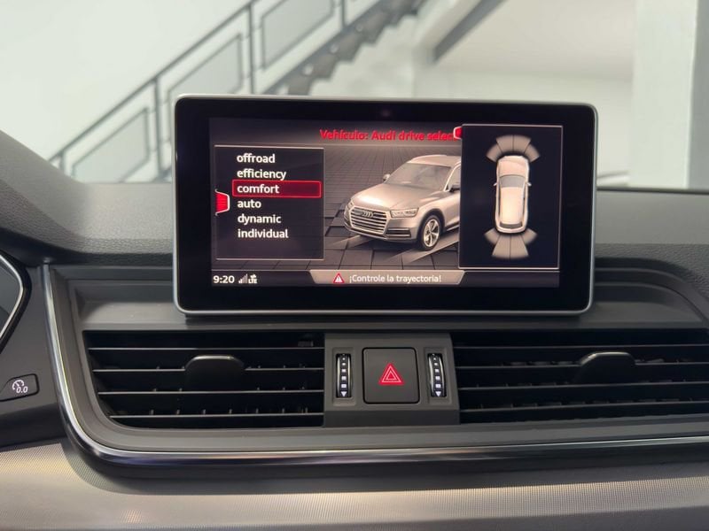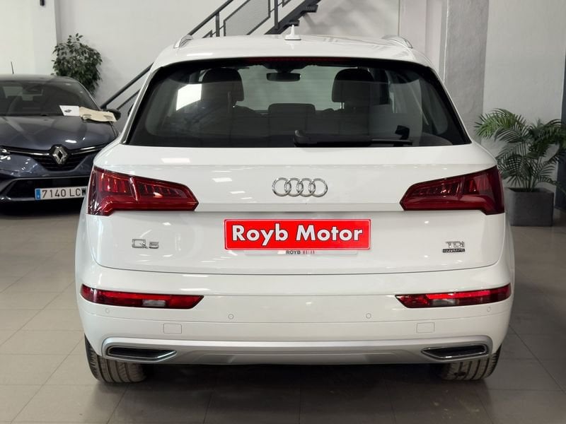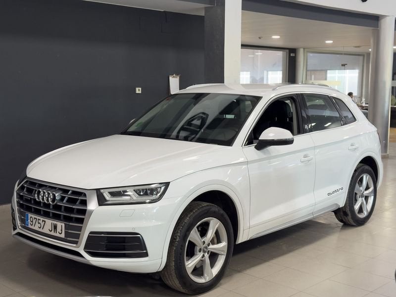 l Audi Q5 2.0 TDI quattro S Line 190CV es un SUV premium de cinco plazas con motor diésel de 190 CV y tracción total quattro, disponible con cambio automático o manual según versión. Ofrece un consumo mixto entorno a 5,5 l/100 km y maletero de 550 litros, alcanzando una velocidad máxima de 218-223 km/h y aceleración de 0 a 100 km/h en 7,6-7,9 segundos. El acabado S Line incluye detalles deportivos, suspensión adaptativa, llantas de aleación, control de crucero, pantalla multimedia, portón eléctrico y numerosos asistentes de seguridad.