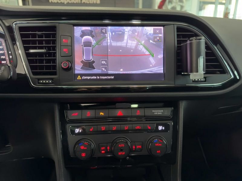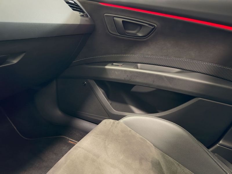 El CUPRA León 2.0 TSI DSG de 2020 ofrece una experiencia de conducción emocionante con un diseño deportivo, motor turboalimentado de 290 CV y tracción dinámica. El interior, como se aprecia en la imagen, destaca por su acabado premium con asientos deportivos en Alcántara, costuras en contraste, iluminación ambiental LED y un puesto de conducción centrado en el confort y la tecnología.
