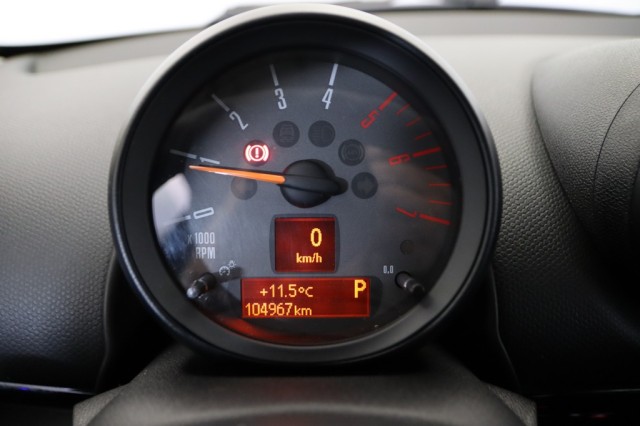 Cinco plazas ( 2+3 ), Cinco altavoces, Antena, Equipo de audio con radio AM/FM. reproductor de CD. RDS y lector de CD para MP3, Toma/s de 12v en la zona de carga. los asientos delanteros y los asientos traseros, Cuatro frenos de disco con dos de ellos ventilados, Apertura a distancia del maletero con control remoto, Luces de lectura delanteras y traseras, Luz en el maletero, Espejo de cortesía iluminado del conductor del acompañante, Control electrónico de tracción, Combustible: diesel y Combustible primario: diesel, Ordenador de viaje con velocidad media. consumo medio. consumo instantáneo y autonomía, Acabados de lujo: pomo de la palanca de cambios en cuero, Alfombrillas, Faros con lente de superficie compleja. bombilla halógena y luz larga con bombilla halógena, Regulación de los faros con ajuste de altura manual, Encendido diurno automático, Airbag lateral de cortina delantero y trasero, Bandeja trasera flexible, Sujeción de carga, Cierre centralizado con mando a distancia y contról de los elevalunas, Portaequipajes longitudinal en el techo en Cromados/Plateados, Airbag frontal del conductor inteligente. airbag frontal del acompañante desconectable y inteligente, Dos reposacabezas en asientos delanteros ajustables en altura. tres reposacabezas en asientos traseros ajustables en altura, Cinturón de seguridad delantero en asiento conductor y acompañante con pretensores, Cinturón de seguridad trasero en lado conductor. cinturón de seguridad trasero en lado acompañante. cinturón de seguridad trasero en asiento central de 3 puntos, Asientos de tela (material principal) y de tela (material secundario), Asiento delantero del conductor y acompañante individual. ajuste longitudinal manual y ajuste manual en altura con ajuste manual del respaldo, Asientos traseros de tres plazas de tipo banco partido de orientación delantera ajuste longitudinal manual con banqueta fija. respaldo abatible 40/20/40 y ajuste manual del respaldo, Volante revestido de cuero ajustable en altura y en profundidad, Dirección asistida eléctrica con endurecimiento progresivo s/velocidad, Compartimento en la guantera, Sujetavasos en los asientos delanteros y los asientos traseros, Sistema de ventilación con pantalla digital. filtro de pólen y filtro de carbón activo, Aire acondicionado de tipo automático, Cristales tintados, Limpiaparabrisas delantero, Elevalunas eléctricos delanteros y traseros con dos de ellos de un solo toque, Lavaparabrisas calentable, Consola en el suelo, Distribución electrónica de la frenada, Sistema de servofreno de emergencia, Indicador de baja presion de los neumáticos con sensor Montado en la llanta, Preparación Isofix, Tarjeta / llave inteligente manual, Control de frenada en curva, Filtro de partículas, Resultado prueba de impacto Euro NCAP :. puntuación global: 5.00. protección adultos: 84.00. protección niños: 83.00. protección peatones: 63.00. puntuación ayudas a la seguridad: 71.00. Versión evaluada: MINI Countryman 1.6 diesel 5dr HA y Fecha del test: 24 nov 2010, Control de arranque en pendiente, Encendido automático luces emergencia, Conexión para: entrada AUX delantera, Botón de arranque del vehículo, Luces frontales antiniebla y Luces de día con tecnología LED, Recuperación de la energía
