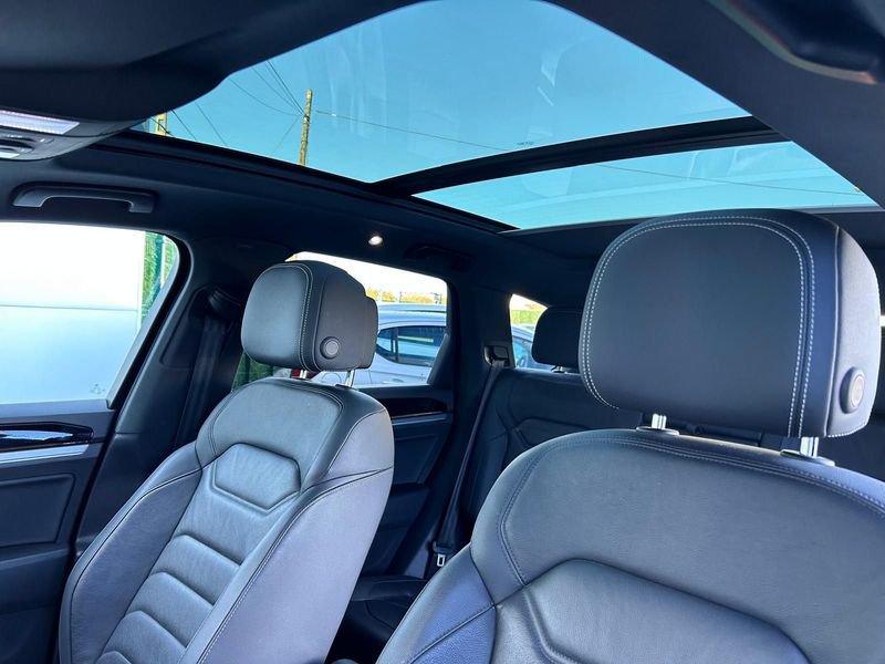 Listones de estribo en acero inoxidable,Fluido aire acondicionado,Revestimiento de puerta en polipiel,Acristalamiento trasero tintado oscuro, Apoyabrazos delatero y trasero,Retrovisores eléctricos-térmicos-abatibles-fotosensibles,Interfaz de teléfono Business,Asistente de aparcamiento del+tras,Keyless-Entry con cierre de seguridad para cierre centralizado,Tapizado en cuero, Volante multifunción deportivo de cuero con cambio por levas,Asientos delanteros eléctricos-térmicos,Inserciones en aluminio cepillado,Boquillas limpiaparabrisas térmicas,Alarma antirrobo, Apertura portón confort,Cubierta de portaequipajes,Paquete iluminación,Apoyo lumbar delantero electroneumático, 2967 cc (3.0 Ltr) 231CV/170kW ,8 velocidades Tiptronic, Sistema de ayuda a la conducción,Regulador de velocidad con regulación automática de distancia, Llantas de aleación 19” , Protección de peatones ,Escape cromado, Tornillos de seguridad en llantas,Barras longitudinales de techo, Techo panorámico,Cámara de visión trasera ,R-Line exterior,- Bicapa perlado,Climatizador bi-zona, Airbag conductor, Airbag acompañante, Airbags laterales, Airbags de cabeza, Dirección asistida, Cierre centralizado con mando a distancia, Elevalunas eléctricos, Equipo de música, Bluetooth, Control por voz, Sistema de navegación, Pantalla frontal táctil,MP3,Tarjeta SD, Palanca de cambio en cuero,ABS, ESP, Control de tracción, ISOFIX, Ordenador, Sensor de presión de neumáticos, Inmovilizador, Alarma,Start-Stop, Parabrisas calefactable, Faros antiniebla, Faros de Xenon, Regulación altura faros, Lavafaros, Sensor de luces, Sensor de lluvia, Encendido automático de faros, Galerías de techo, Enganche remolque, Reconocimiento señales de tráfico, Alerta cambio de carril, Asistencia al arranque en pendiente, Freno de estacionamiento eléctrico, Asistente de frenado de emergencia, Sistema de llamada emergenica eCall, 4×4.